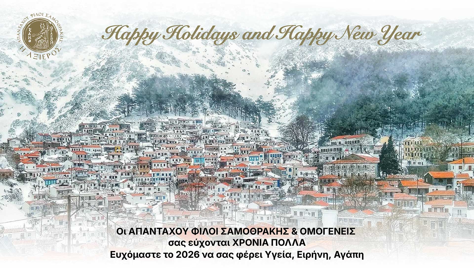 Ευχές από την ΑξίεροAxierosDecember 21, 2025Δημοσιεύσεις - Ανακοινώσεις Οι απανταχού φίλοι Σαμοθράκης και ομογενείς, σας εύχονται Χρόνια Πολλά. Ευχόμαστε το 2026 να σας φέρει Υγεία, Ειρήνη, Αγάπη. Previous Post Διαβούλευση Δήμου Σαμοθράκης για τα Ιαματικά Λουτρά Next Post Δημόσιες Παρεμβάσεις για την ακτοπλοϊκή συγκοινωνία Σαμοθράκης